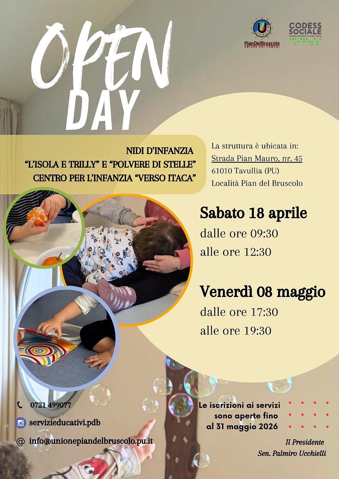Sono aperte le iscrizioni online ai nidi d'infanzia dell'Unione dei comuni Pian del Bruscolo per l'anno scolastico in corso.